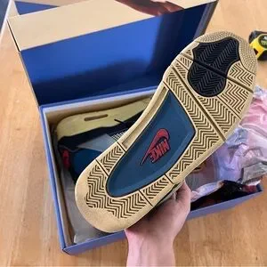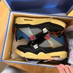 Air Jordan 4 Retro Low-Top in Black with Blue and Red Accents