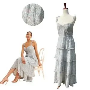 NWT ASTR the Label Midsummer Multi Floral Tiered Maxi Blue Dress Size XL Spring