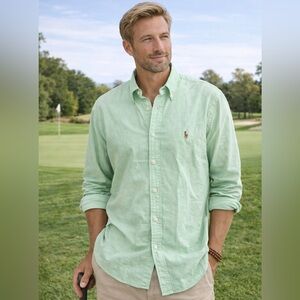 Ralph Lauren Custom Fit Green Oxford Button Down Shirt Long Sleeve XL