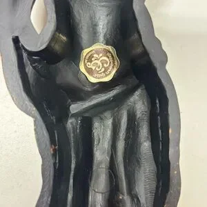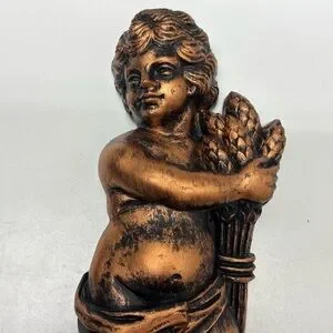 Set of 2 vintage Coppercraft Guild Syroco Cherub wall sconces. Made by Dart Ind. One is holding a sheaf of wheat, the other has a bundle of sticks. Done in the ornate Baroque revival style popular in the 60s and 70s, these pair is made of a rigid, black resin plastic brushed with copper paint for a faux antique metal look.
