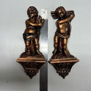 Set of 2 vintage Coppercraft Guild Syroco Cherub wall sconces