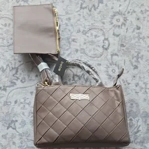 bebe Quilted Taupe Crossbody with Coin Pouch and Gold Logo