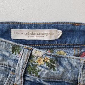 Pilcro And The Letterpress Shorts Womens 31 Blue Floral Embroidered Boyfriend