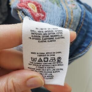 Pattern: Lightwash denim base accented with garden-inspired floral embroidery that creates a feminine, boho look.