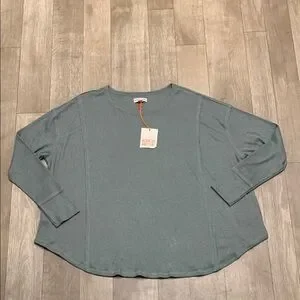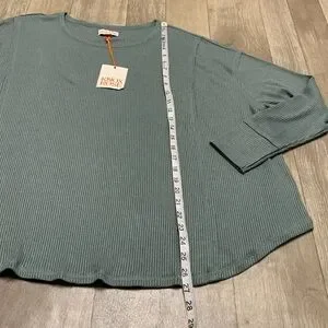 Womens NWT Knox Rose Ribbed Light Green Oversized Tunic Top Shirt