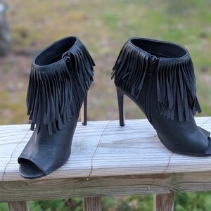 Madden Girl Black Fringe Peep-Toe Stiletto Ankle Heels