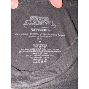 Keywords: Funimation, My Hero Academia, Anime, anime T-shirt, men's medium, black T-shirt, graphic print, crew neck, short sleeve, cotton, licensed apparel.