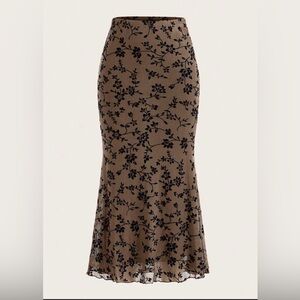 SHEIN Brown midi/ Maxi Skirt with Black Floral Print