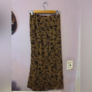 Lightweight maxi skirt with an elastic waistband. Brown base with black floral pattern. Straight, flattering silhouette. Only worn once. Midi/ maxi skirt