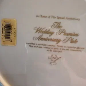Lenox dinner plate with raised bird and floral embossing. Cream-toned glazed finish. Subtle ornate border detailing. Elegant, decorative presentation piece. Wedding Promises Anniversary Plate. Vintage Y2K.
