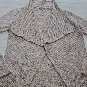 Relaxed fit with an open-front, non-closure design. Marled "lofty" knit for a multi-dimensional, speckled look. Pairs perfectly with denim, leggings, or over a slip dress. Cream, vanilla, subtle pink, purple, merlot colored threads.