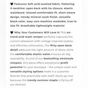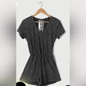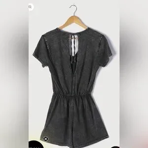 Lulus Black Acid Wash Open Back Tie Detail Short Sleeve Romper New