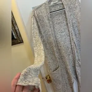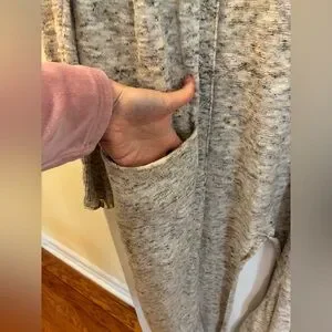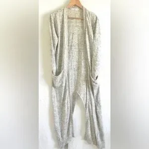 Zara Marled Neutral Open-Front Long Duster Cardigan with Split Back