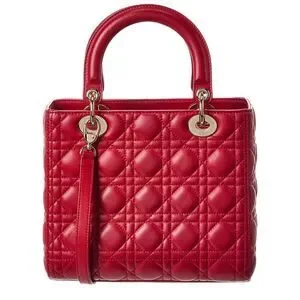 About the brand: Elegant and timeless French luxury. This is an authentic, pre-loved piece. This item is in very good condition and shows light signs of wear. This item shows corner wear, wear to handles For more information on condition, please see our condition guide at the bottom Lady Dior Medium in Red Lambskin Leather with fabric lining and gold-tone hardware Measurements: 9in long x 5in wide x 8in high; 5in handle; 17.5in strap Please note: All measurements were taken by hand and are approximate; slight variations may occur. Accompanied by dust bag Zipper closure Our products are 100% genuine. In some cases we purchase merchandise from trusted independent suppliers and not directly from the brand owner. In all cases we stand by the authenticity of every product sold on our site.