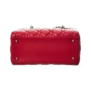 Dior Red Lambskin Leather Lady Dior Medium (Authentic Pre-Loved)