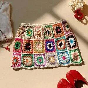 Multicolor Elegant Women's Colorful Floral Pattern Mini Knitted Skirt