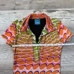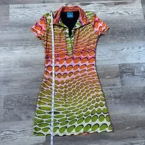 OMIGHTY Mini Dress Pink Green Psychedelic Polo Y2K Indie Sleaze Small