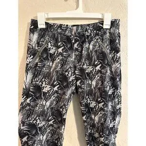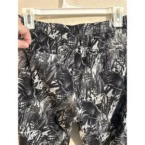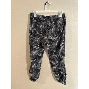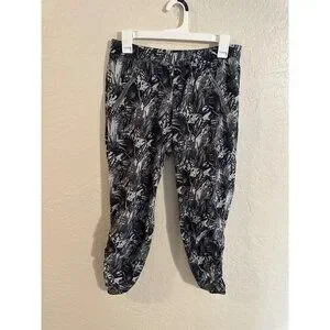 Y Athleta Ruched Hem Black & White Tropical Print Athletic Leggings