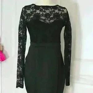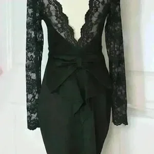 High quality and beautiful black midi dress with lace long sleeves and cut out on the back with a big bow on the waist. Super cute and sexy. NWT.