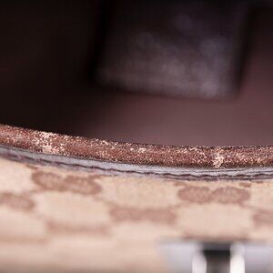 Outside: Shows wear, scuffs and discoloring throughout the leather. Also, the leather trim and handles show visible wear, including creasing, scuffing.