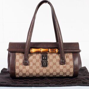 Authentic Gucci Monogram Bamboo Bullet Bag Dark Brown