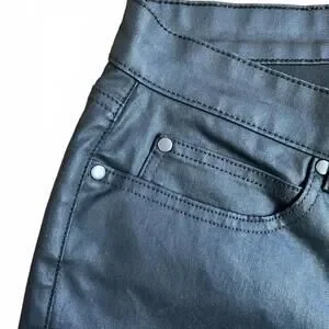 Eileen Fisher Black Wax Coated Skinny Pants Size 6 Mid Rise AS-IS