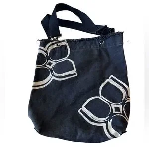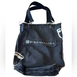 BCBG Max Azria High End Black Canvas Shoulder Bag Beach Surf Tote NICE