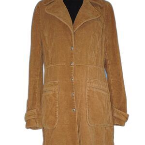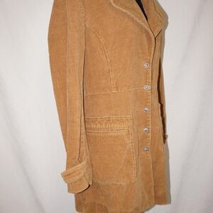 tan corduroy free people button up jacket with a removable fur collar. this cozy statement piece features soft textured corduroy in a warm neutral tone, paired with a plush detachable collar that adds versatility and extra warmth. the button up design gives it a classic vintage feel, while the relaxed fit makes it perfect for layering. stylish, functional, and full of boho charm