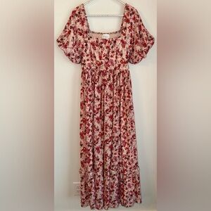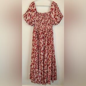 🌸 Böhme Floral Smocked Tiered Maxi Dress - Puff Sleeve - S