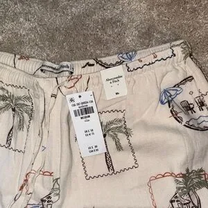 Abercrombie & Fitch Cream Tropical Stamp-Print Linen Pants