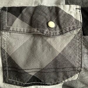 Short-sleeve plaid button-down from Point Zero. Dual chest pockets with flap closures. Lightweight, breathable fabric for everyday wear. Clean, modern monochrome styling.
