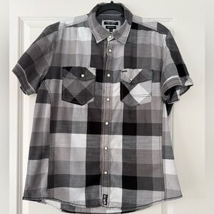 Point Zero Men's Short Sleeve Plaid Button-Down Shirt - Black & Gray