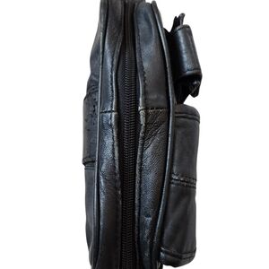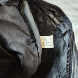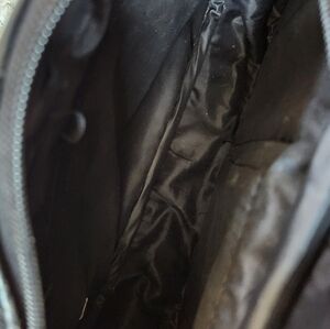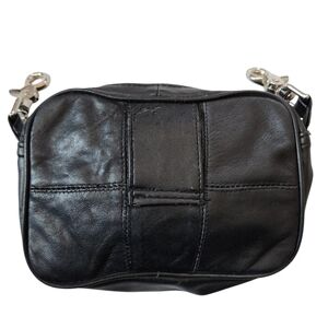 Vintage Y2K Black Harley Davidson Biker Clip Hip Belt Purse. **No strap, does have a loop on the back for a belt or hooks on the sides. 2 front velcro pockets, velcro pulled up on one side a little. Rhinestone metal logo. Zipper inside pocket. leather has some peeling, inside liner is ripped at the top (see pics) Approximately 8 inches wide, 6 inches tall laying flat