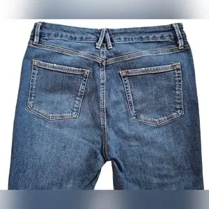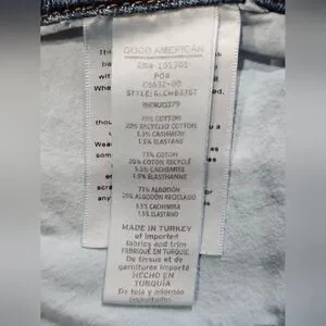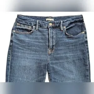 Women's Good American Good Legs Cropped Mini Boot High Rise jeans Manufacturers distressed mark on the knee and normal wear throughout. Color may vary due to camera lighting.
