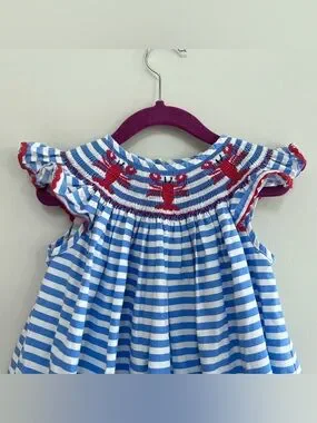 Classic Whimsy Lobster Treasures Smocked Striped Angel Sleeve Dress