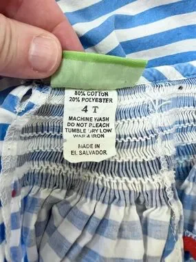 Classic Whimsy Lobster Treasures Smocked Blue Striped Angel Sleeve Dress, 4T