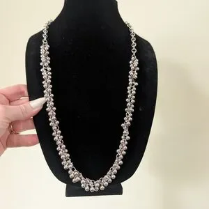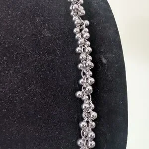 Elegant silver beaded chain necklace for women. Features clustered bead detailing for a sophisticated look. Lightweight and versatile; pairs well with casual and dress outfits. Silver color adds a polished finish.