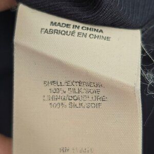Beautiful navy black silk twill with feather fringe at collar, down the front and at cuffs