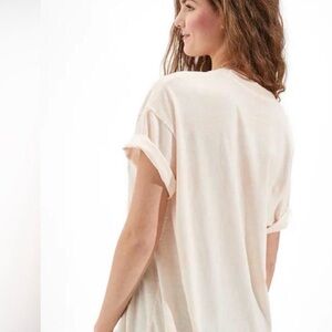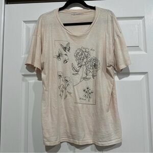 American Eagle Outfitters Cream Short-Sleeve Tee with Black Floral Sketch