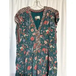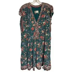 Keywords: Anthropologie, Floral Dress, Mini Dress, Boho Dress, Cottagecore, V Neck Dress, Green Dress, Red Floral, Womens Dress, Summer Dress, Casual Dress, L XL, Bohemian
