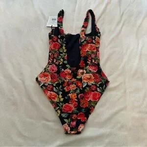New! Onia Black Rachel Floral One-Piece Swimsuit Size XS 38044