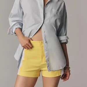 Anthropologie Maeve Surf City Linen Blend Embellished Shorts Yellow Size 6