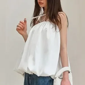 Elegant strapless white top with a gathered neckline and soft bubble hem. Lightweight, drapey fabric creates a flattering silhouette. Versatile design ideal for casual or dressy looks. Pair with jeans or a skirt for effortless style.