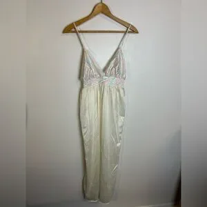 Vintage Slip midi Dress Size L V-Neck Pastel tones Grandmacore Lightweight