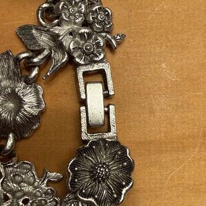 🌺 🌺🌺 Silver Tone Floral Bracelet With Hummingbirds Vintage Style Jewelry