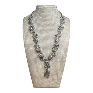 INC Silver Leaf Rhinestone Design Statement Necklace 19” Necklace + 3” Extender