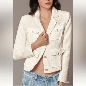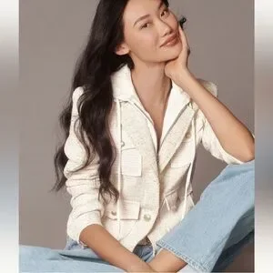NEW By Anthropologie Tweed Patch Pocket Dickie Jacket Small
