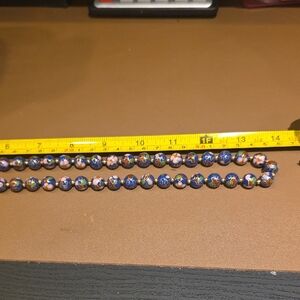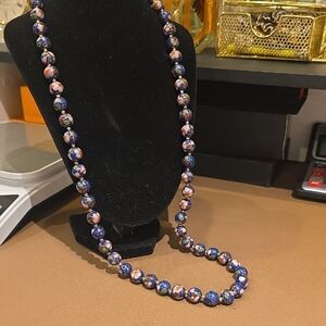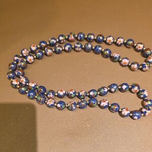 Vintage Cloisonné Bead Necklace — Navy Blue and Pink Floral