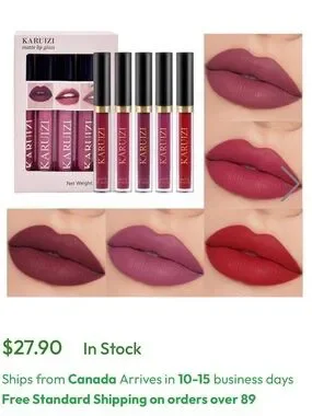 KARUIZI matte lip gloss set. Includes five liquid lip shades in pink and rose tones. Smooth, pigmented finish. Great for everyday wear. SET of 5!!!