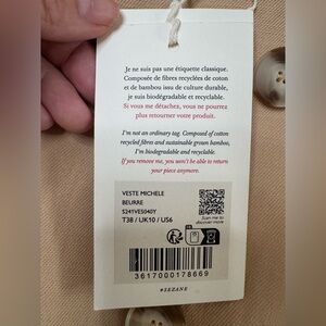Sezane Michele Jacket Blazer Linen Blend in Butter Beige size 38 US 6